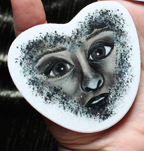 original close up portrait drawing created with charcoal, graphite, grease, and colored pencils