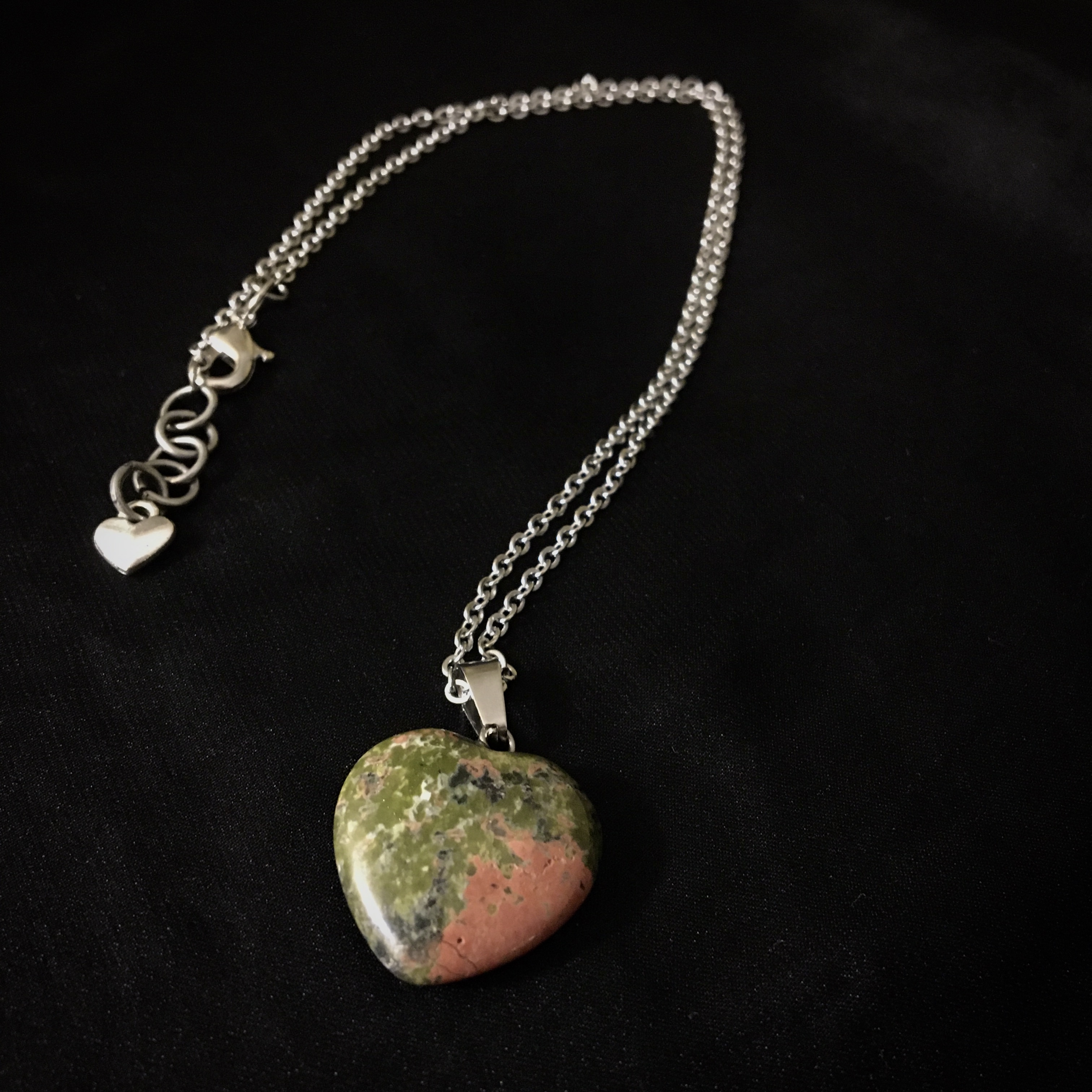 Unakite is a composite material made up of other stones! This helps bring on its unique color! It is often thought to be a stone of sight and healing. It has many ties to the ability to balance emotions as well♡ May this gemstone pendant necklace bring you wellness and stability♡