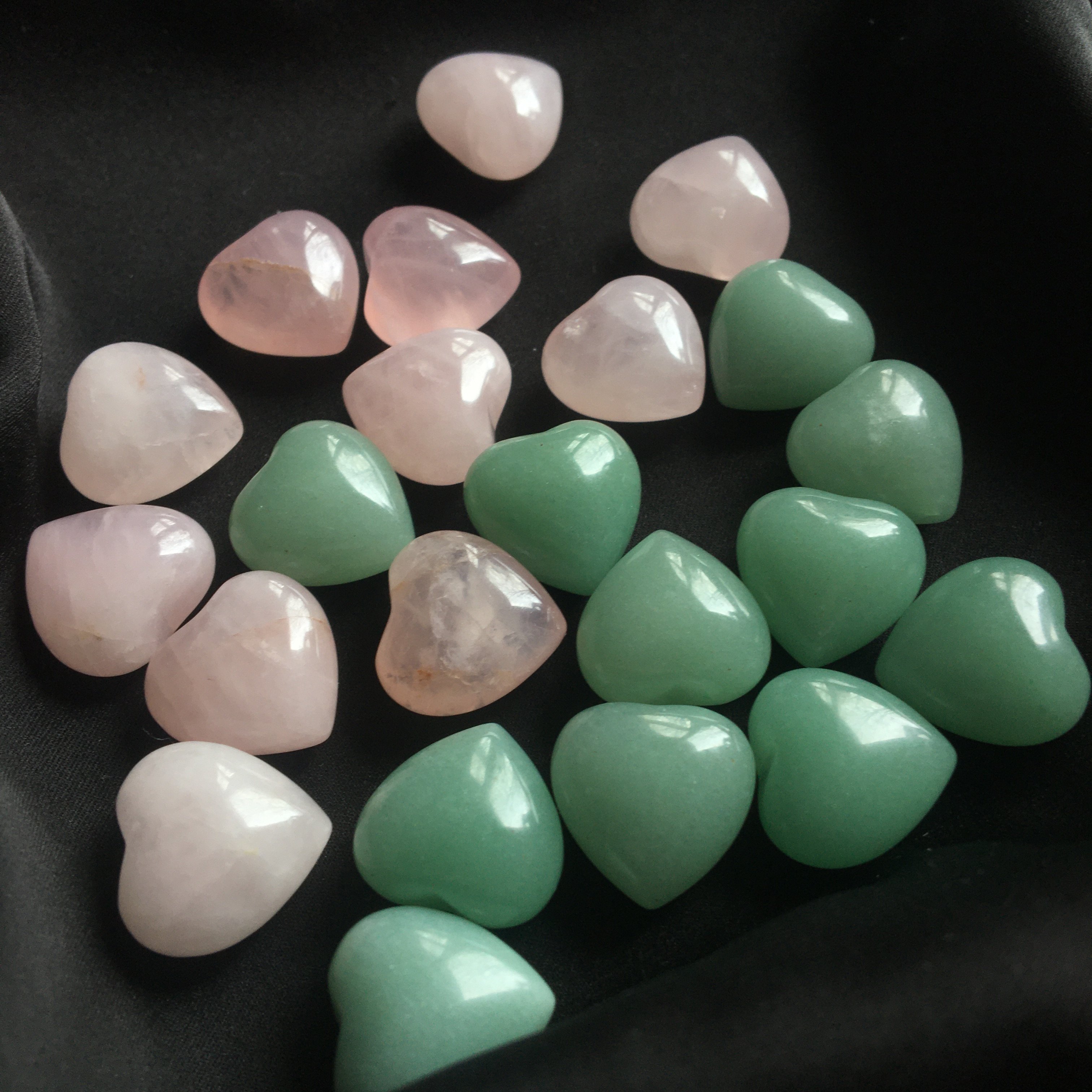 Duo of one half inch puffy aventurine heart and one half inch puffy rose-quartz heart ♡