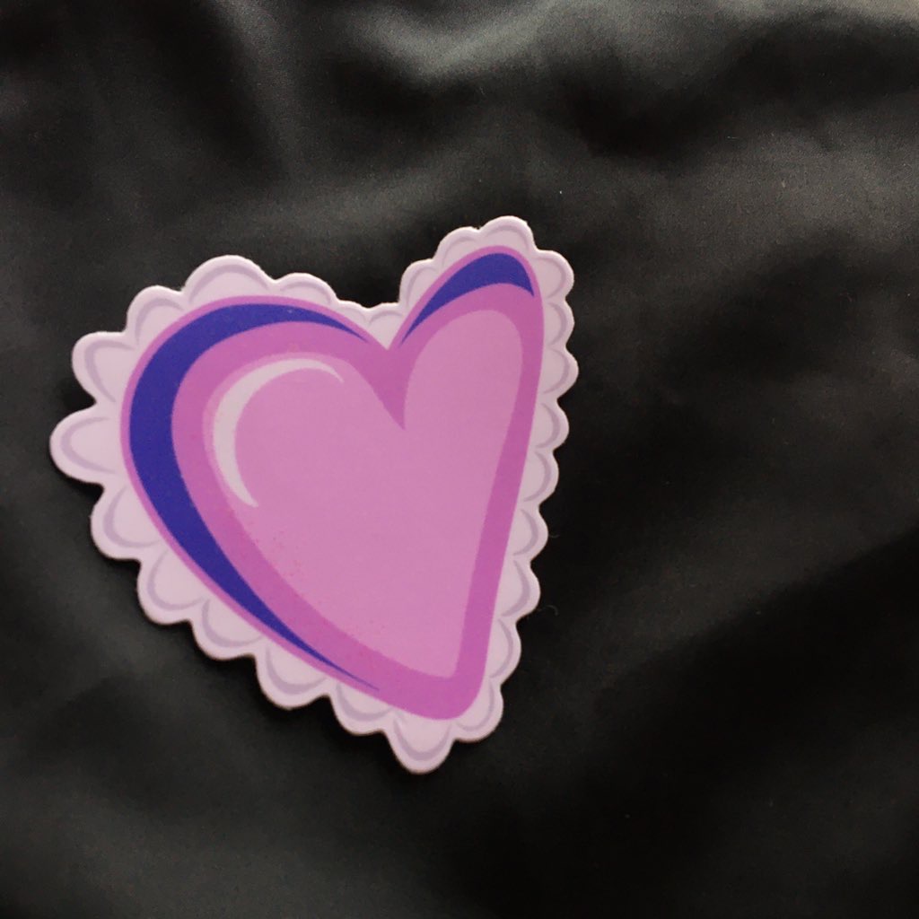 ♡ scalloped pink, white, and lavender colored heart sticker ♡