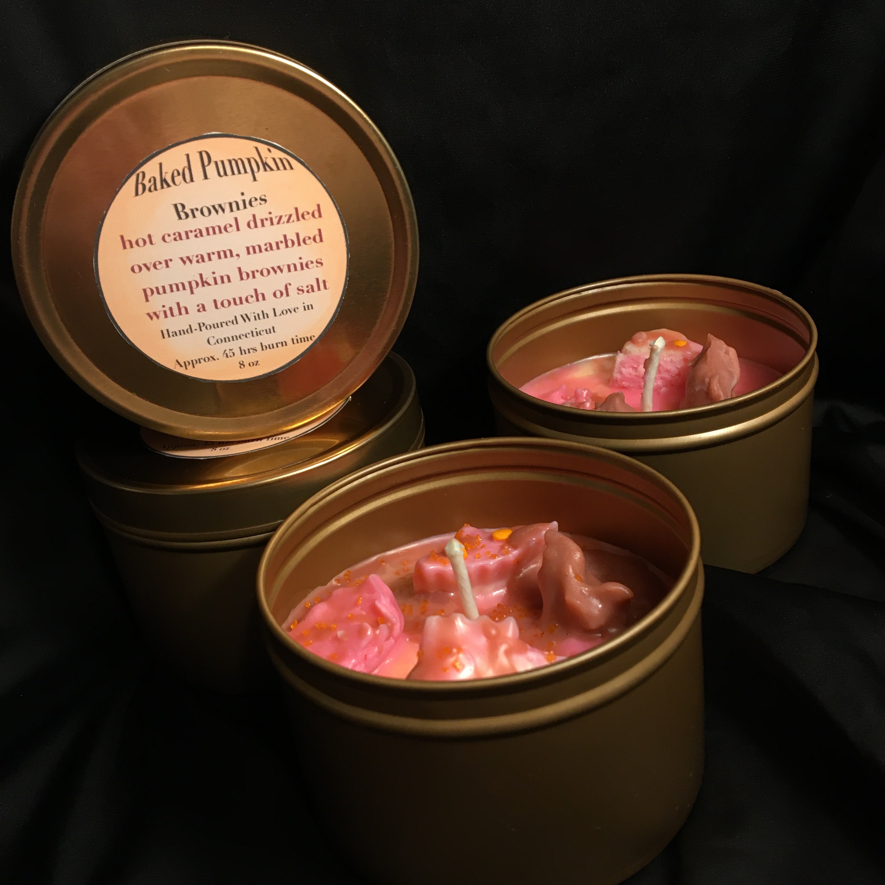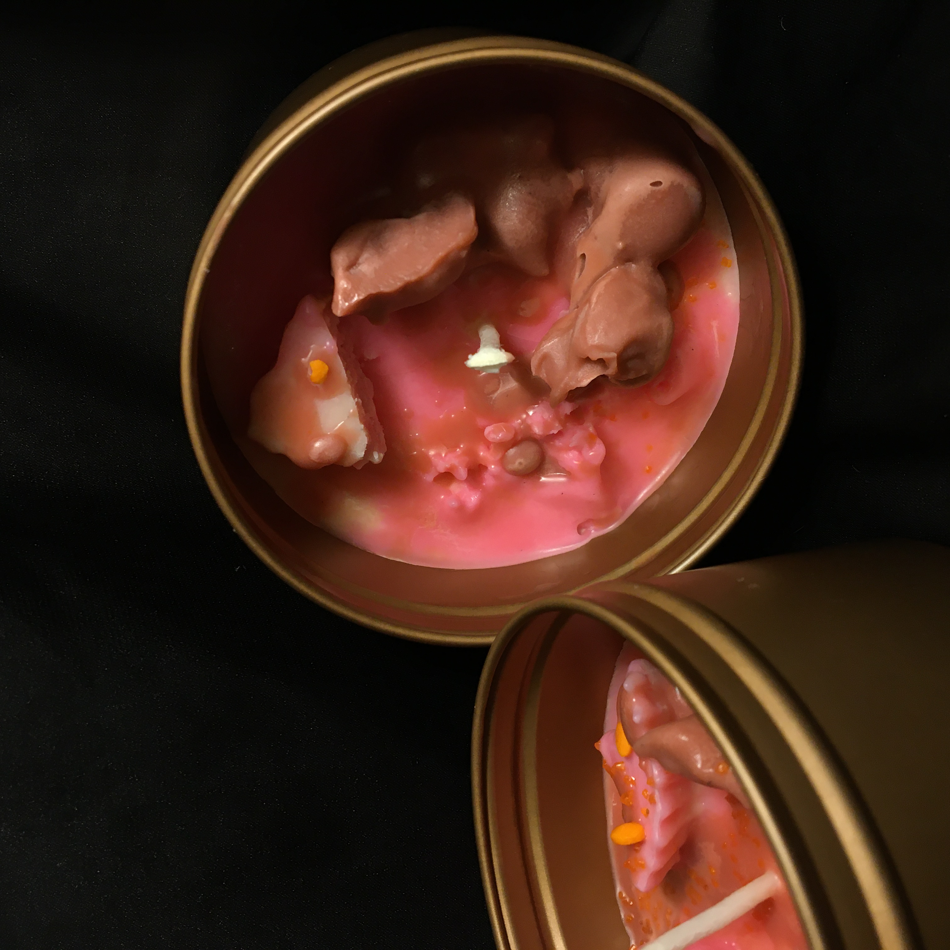 8 oz candle with decorative top in a golden tin ♡ made with 100% soy wax ♡