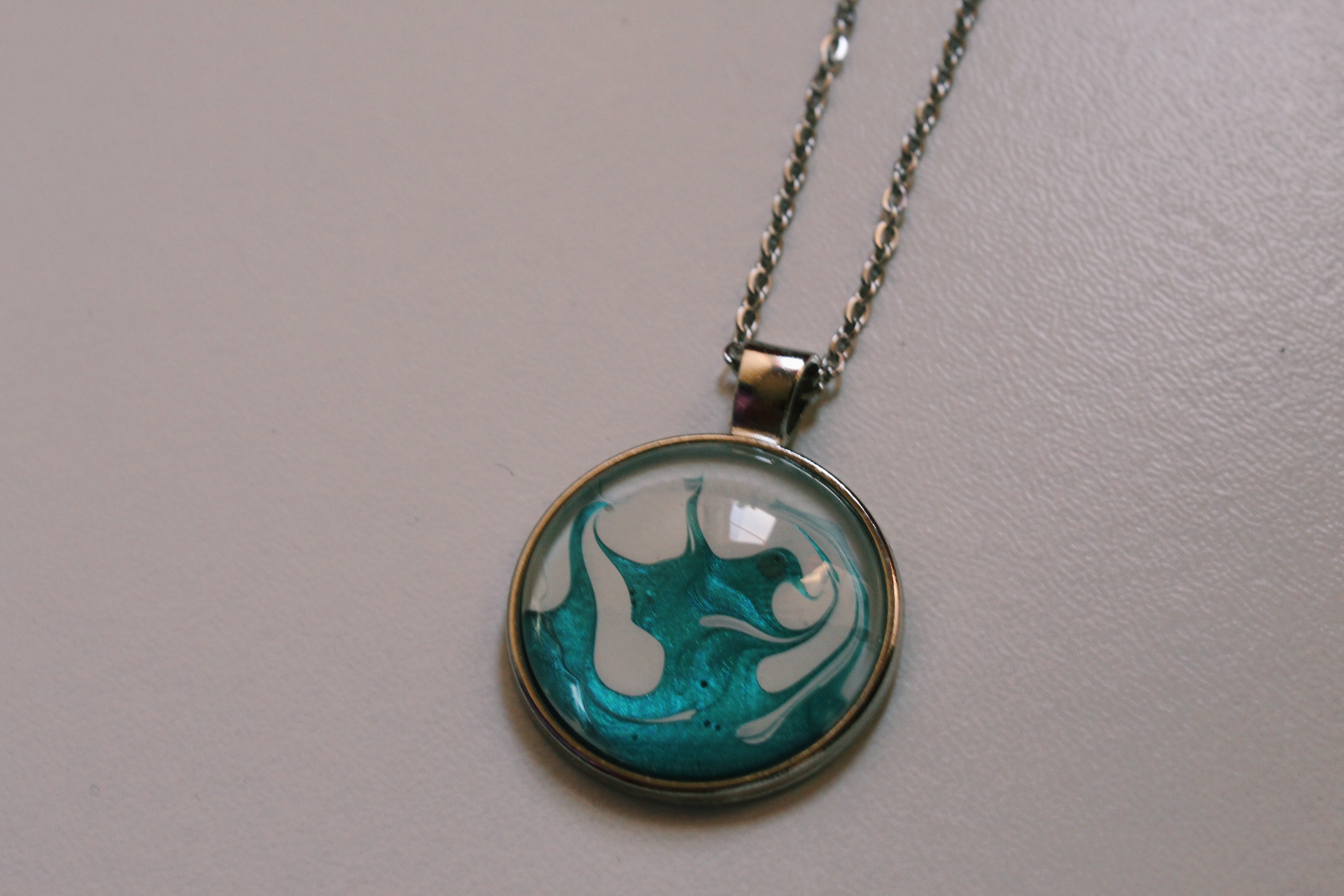 Part of the all new Elements Series, featured here is “Sea Froth” belonging to the element of water. This one of a kind, hand-painted pendant is sure to add a unique touch to your stylings! Sealed and magnified by a raised glass dome bubble ♡