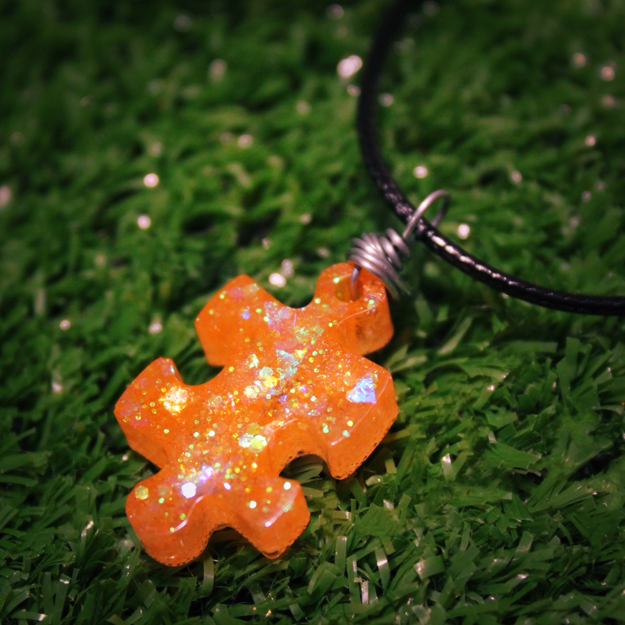 Puzzle Piece Orange Glitter Pendant