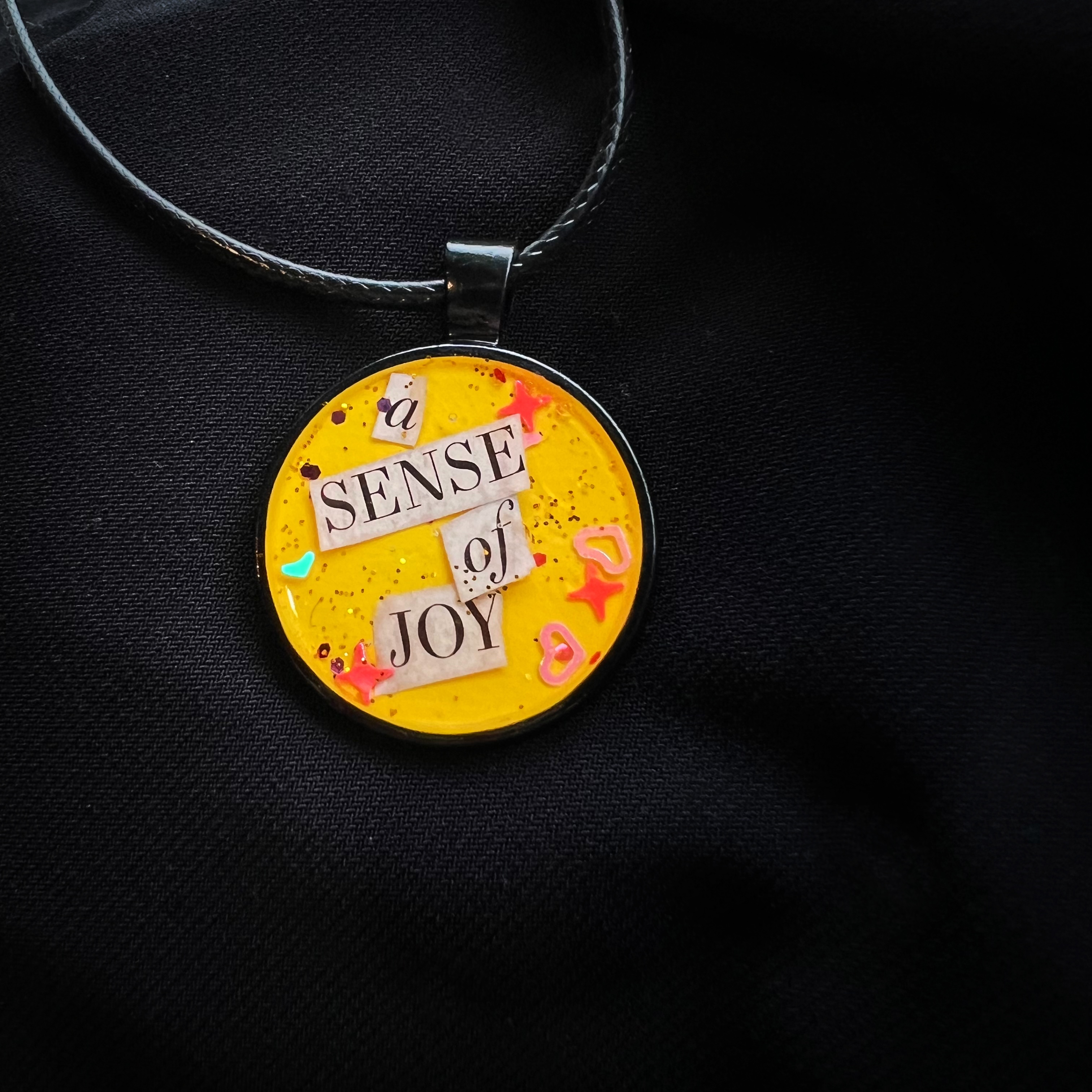 Incorporating concepts of color theory, this special pendant captures the collage clipping "a sense of love" which is meant to bring about warm, loving energy, welcoming opportunities, optimism, and luck! The vibrant sunny yellow background is both invigorating and visually pleasing to the eye!